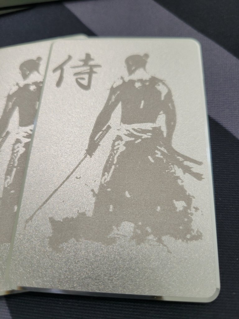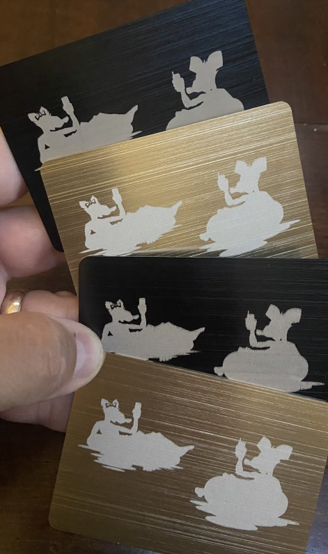 Images should be on a single layer and a single color as the cut cards are made by burning off the anodized surface anywhere there is color in the graphic leaving a grayish silver color on the surface.