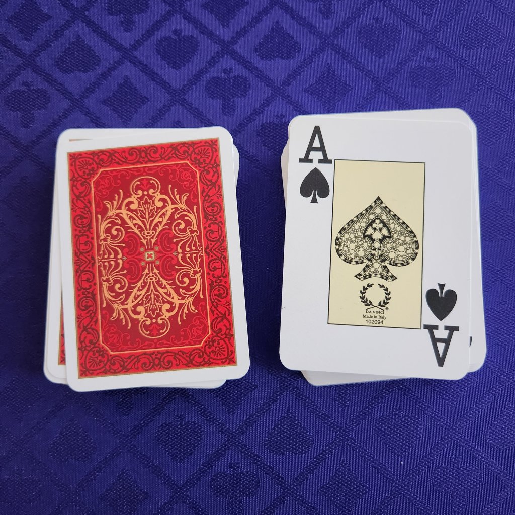 With this tip I think they are the best value card out there. I bought a lot of setups at that price. I think the price is higher right now, not sure if that is permanent. I don’t think they have any of the red/blue jumbos at this price, standard index only. They feel more Copag than Modiano to me.