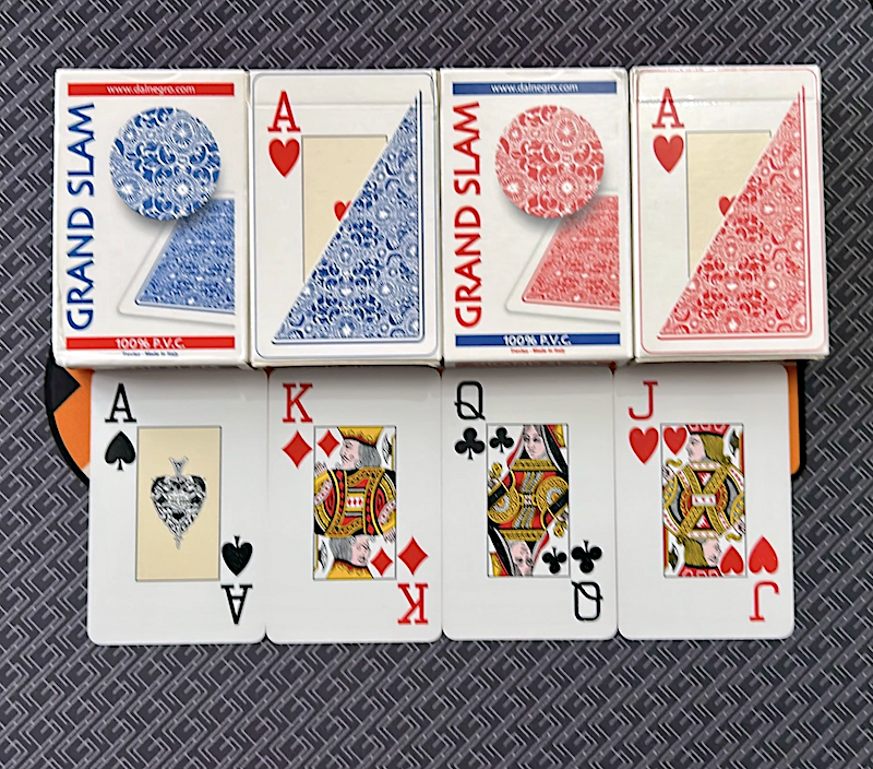 It's apparently the season for playing card group buys! Been in contact with a vendor in EU to get a decent-size order (30+ setups) of Dal Negro Grand Slam bridge/jumbo decks shipped to me in California.