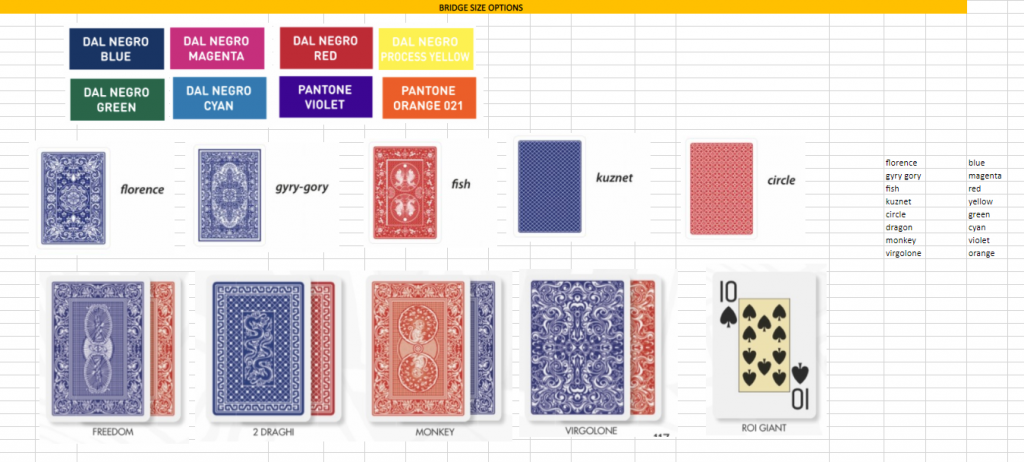Which 2 colours do you want for bridge and how many of each colour? FYI you are the only person to select fish. if you want another pattern to choose let me know otherwise I will put fish in for you. Remember this is just to see how many decks people want and which is the favourite pattern and colours overall. Unless we can all settle on 2 colours and 1 pattern to meet the MOQ of 1000 decks total the order wont go ahead.