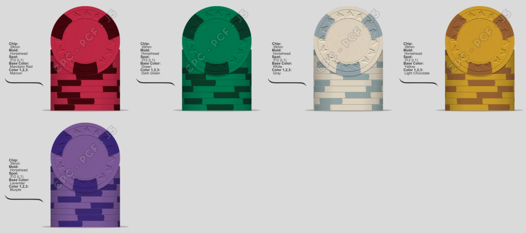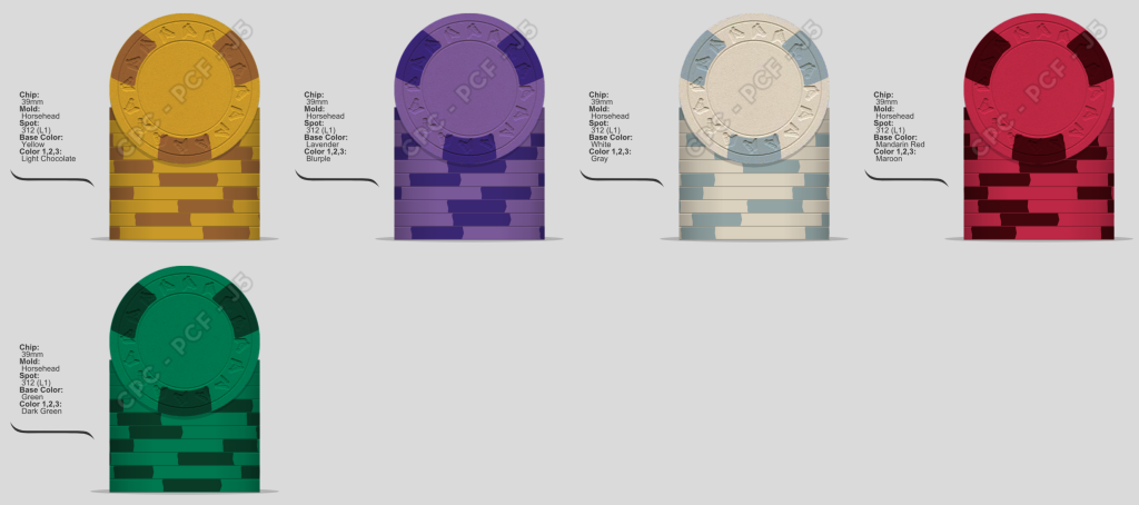 I find this maybe a bit boring, having mostly red, gree and white chips in play. Yellow and Lavender fracs with a more traditional white 1, red 5 and green 20 is higher on my list atm.
