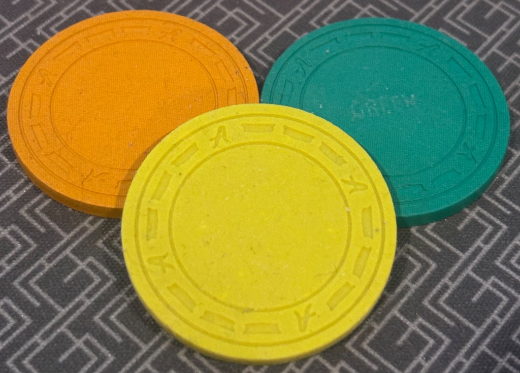 FWIW, this chip was part of a set I designed and gave to my BIL. Each chip was based on a theme with close meaning to him. He, my sister and their family live in Florida and the citrus industry is part of their lives. The “theme” for this chip was “Citrus” and the colors of course, are meant to represent Lemons, Limes and Oranges.
