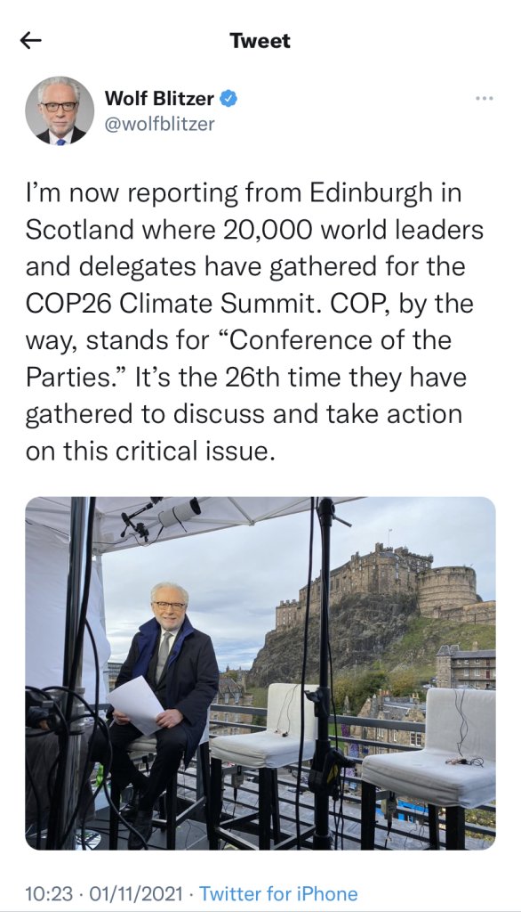 Wait, that's NOT Glasgow Castle in the background??American journalists covering the COP26 event in Glasgow have turned up in Edinburgh… which is a different city and an hour away!! WTF?!?!