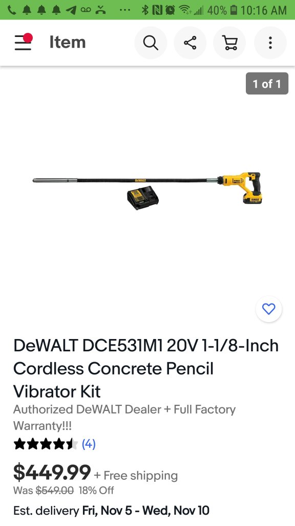 The dewalt 20v battery powered concrete vibrator has to have been made with one use in mind. It is no where near powerful enough to actually vibrate concrete. Don't buy this thing and throw it in your personal tools if you don't want your wife out there serching through your tools either!