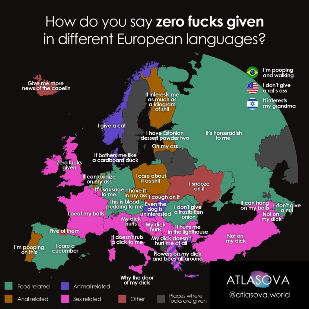 I've actually used the US version "I don't give a rats ass" before. Shifted over to the "zero fucks" version as it was newer, and thus funnier.