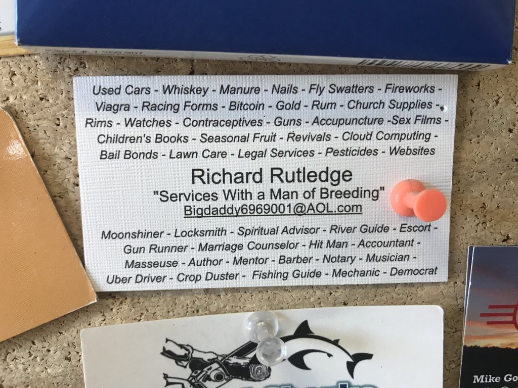 Kudos to Mr Rutledge for not only putting "sex tapes" and "children's books" on the same business card, but putting one right after the other. o_O
