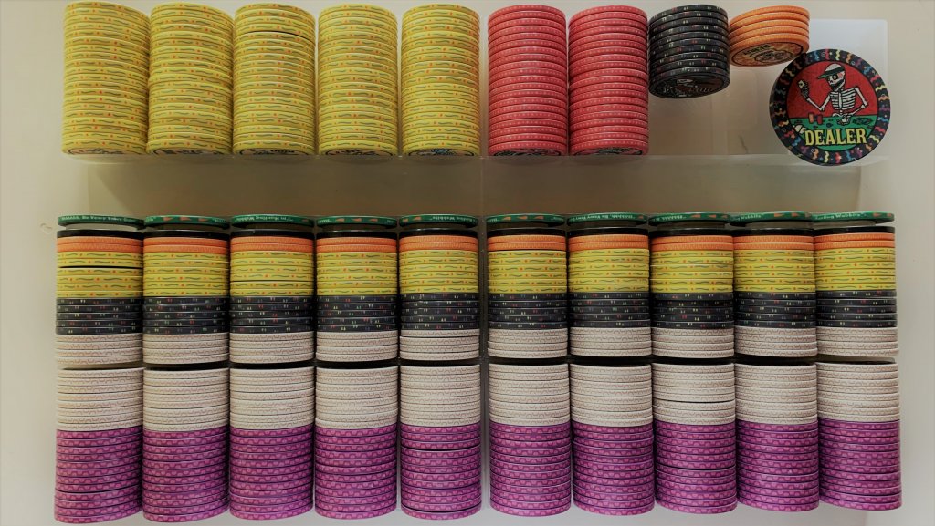 It worked out for the best, I kept the default five colors (yellow quarters, blue 1's, red 5's, green 25's and black 100's) but added purple bounty chips and orange bonus chips. I didn't have that problem when it came to the PGI Monacos, because the 25 cent chips were yellow by default.