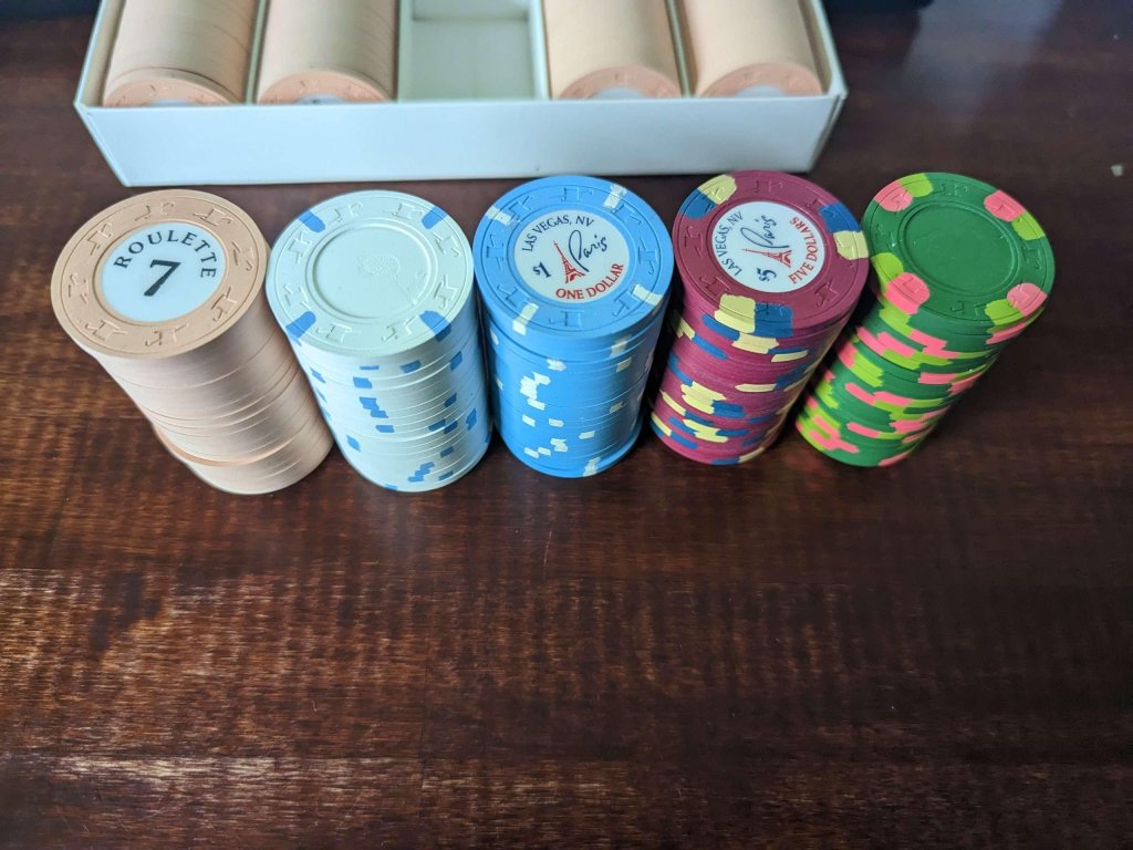 Not cool. These chips were represented as new, implying they should be mint. I suspect they somehow slipped through the cracks and I'd bet Jim will offer some sort of return, partial refund or credit.Fortunately, I was able to score a rack of canary yellows... Unfortunatelymost of them came with this brownish stain that's not hooker juice but I don't know how to get rid of it.