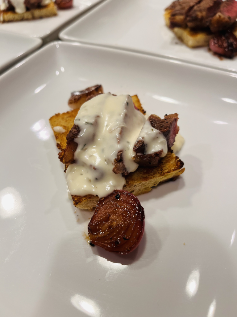 Toasted Sourdough, Ribeye, White Wine Cream Sauce, Onions (5-Star Shit on a Shingle)...pre-garnish...d'oh
