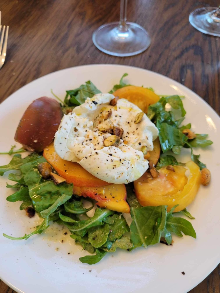 Heirloom Tomatoes, Peaches, Burrata, Pistachio and Arugula
