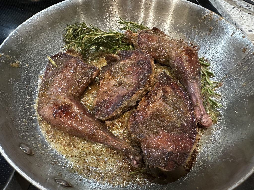 Finally attempted to cook a pheasant. Marinated overnight in wine. The side is non “traditional”, but I couldn’t let all the goodness in the pan get wasted, so pasta in the pan after cooking sounded good.