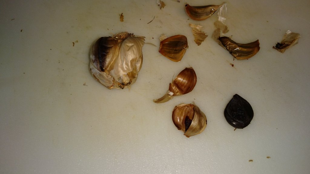 The black comes from black garlic. If you aren't familiar with black garlic, you are missing out on the greatest thing since roasted garlic. In this age of the internet, you have access to this.