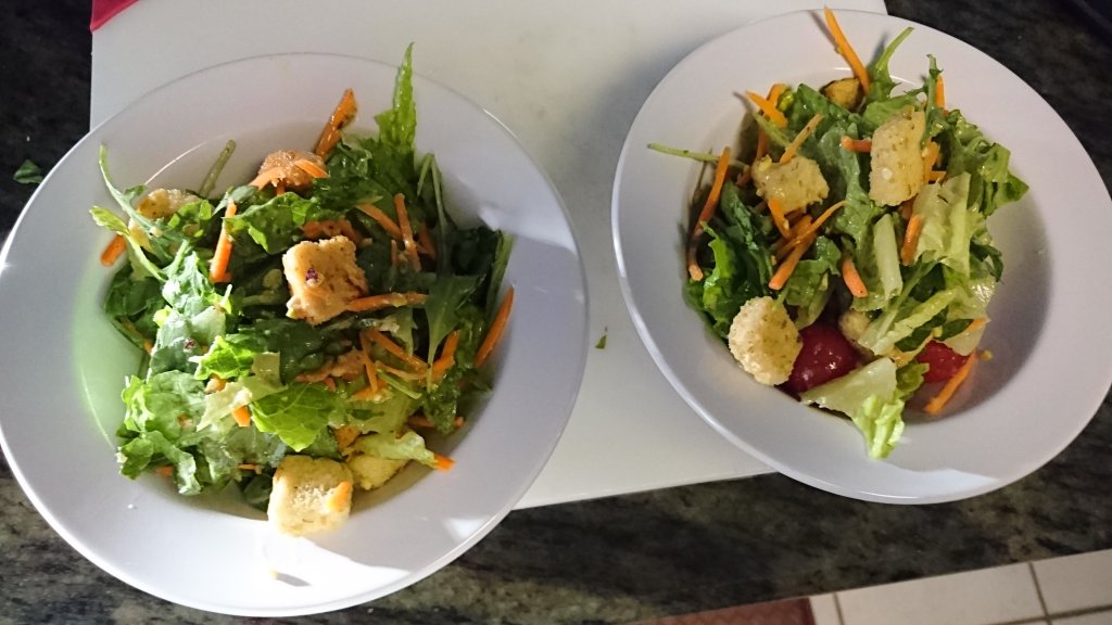 While waiting for the pasta water to heat up and the chicken breast to cook, make a little salad. This one used some crushed pistachios I had left over from a previous dinner, because that's what salads are for - killing time and using up leftovers...