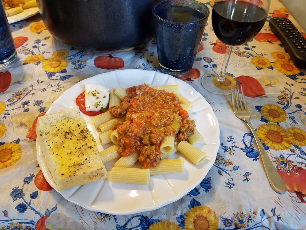 Making a favorite of mine today, rigatoni bolognese with fresh tomatoes from the garden: