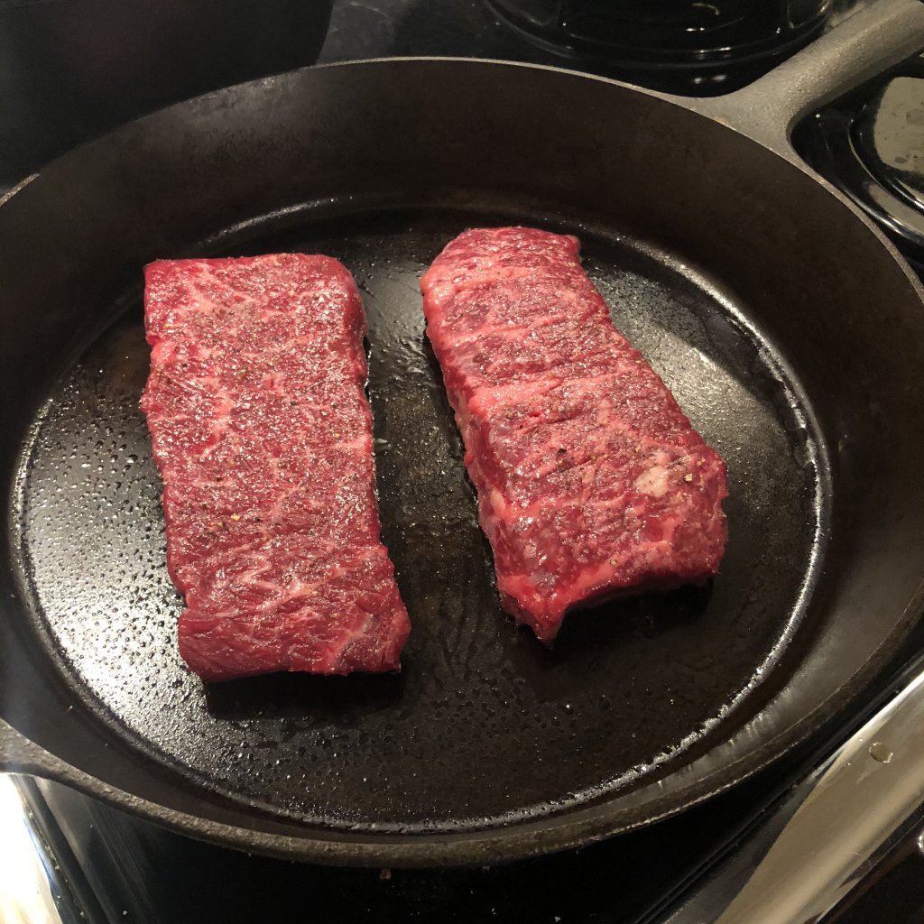 $8.50 worth of Denver Steaks. 3 minutes on one side, 2 on the other.