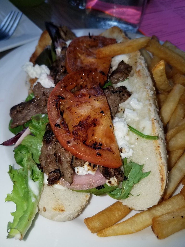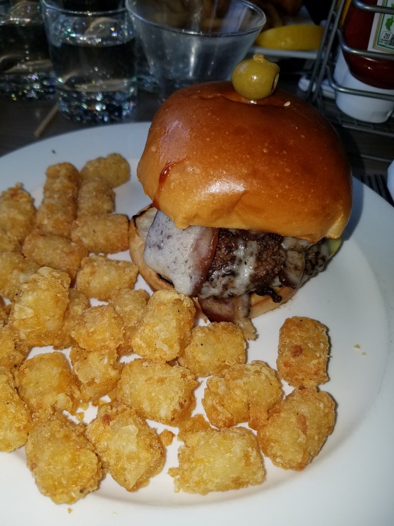 Your dad looks thrilled for you to be taking his picMy parents just got into town. Solid dinner. Bloody Mary burger and a marinated beef sandwich.