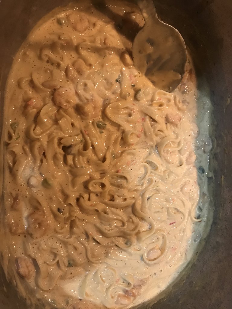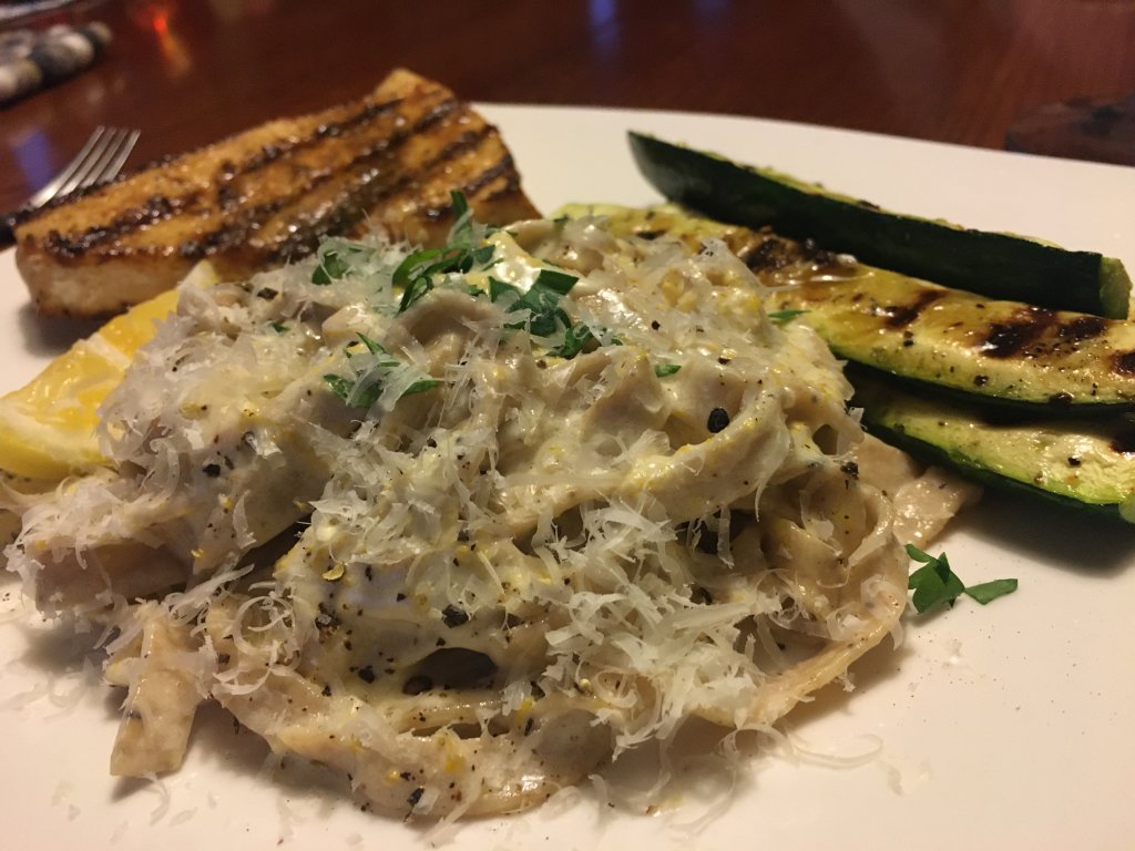 Last night's blackened swordfish, zucchini and fresh black pepper pasta with lemon creme sauce.