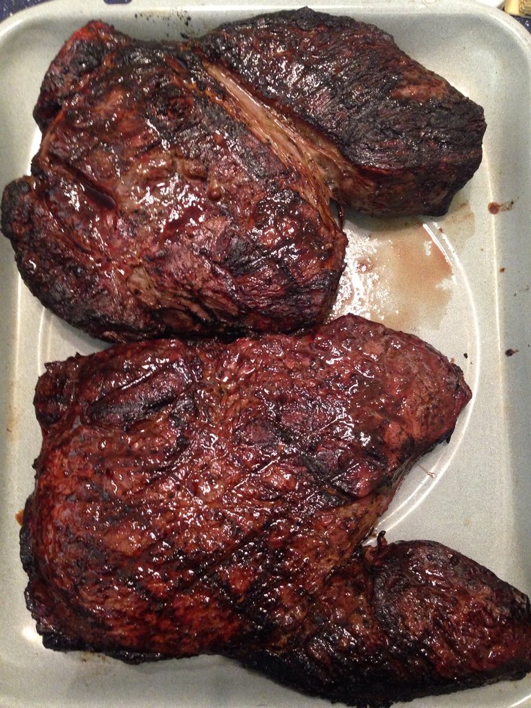 Sometimes fish and chicken just cannot satisfy!!! Grilled up a few filets tonight! Now a salad and a starch and that's what's for Dinner!!!