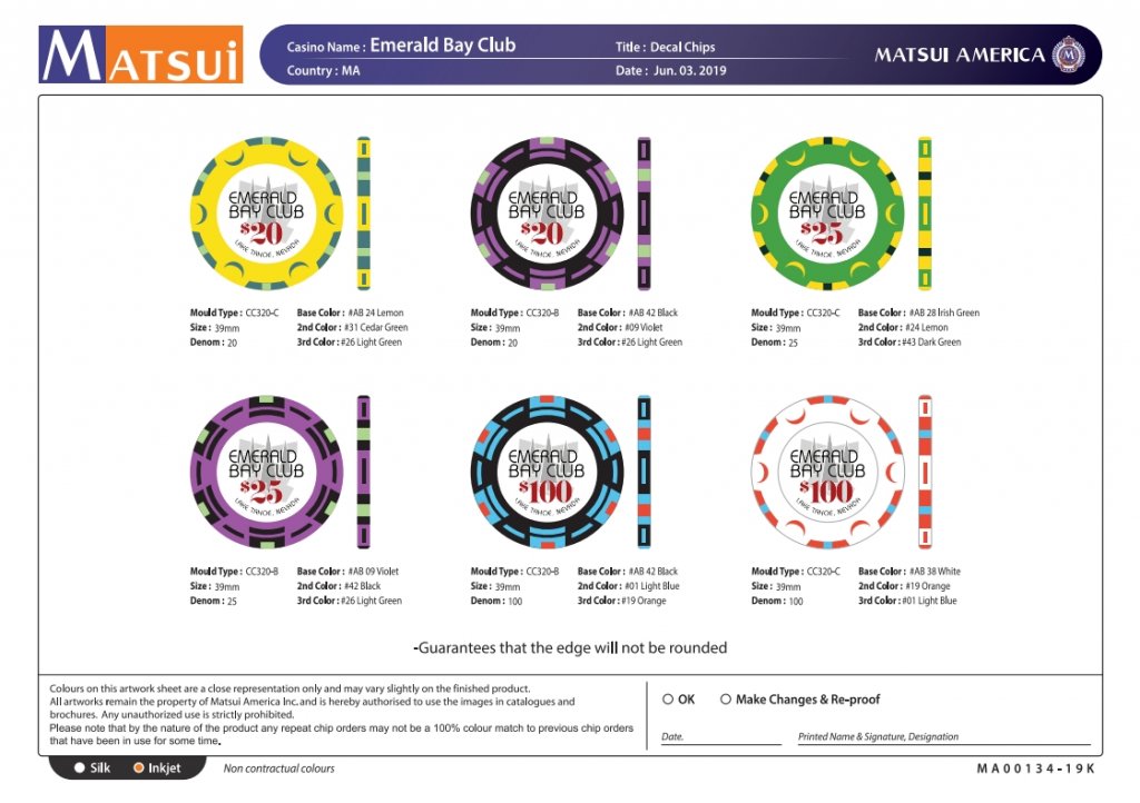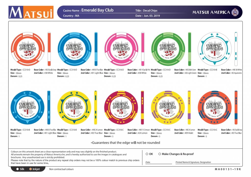 Remember it is Emerald Bay not Hot Pink Bay. You gotta have a green chip! Although I was thinking that a Hot pink $2 would be smoking.