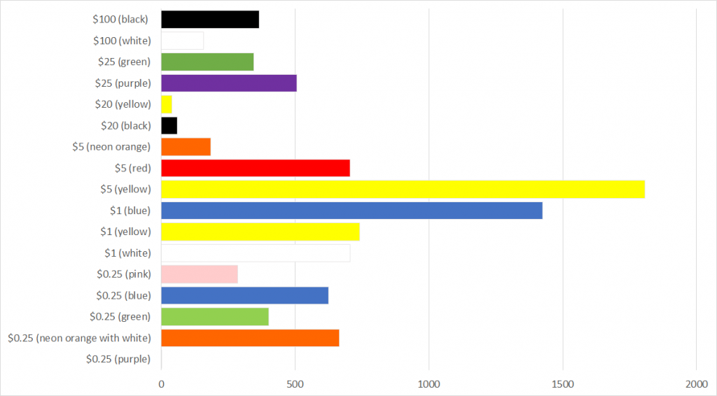 Chips potentially on the chopping block: purple frac, snapper, orange $5, both $20s and probably the best white chip of all time.