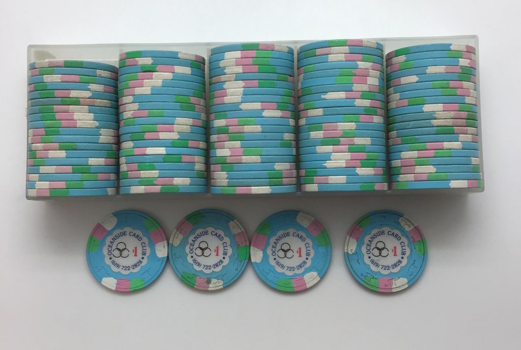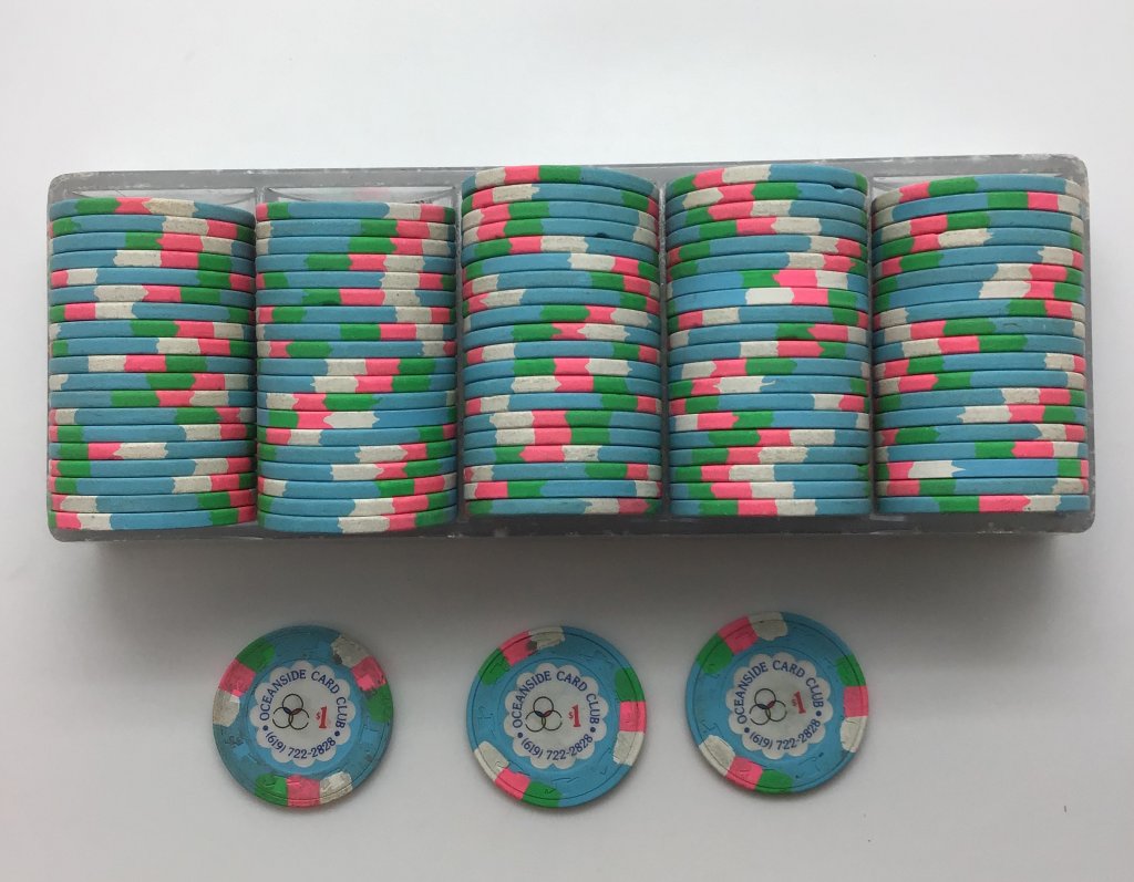 So for those who wanted to see, there are two styles of Oceanside Card Club $1 chips. Both qualify for free shipping: