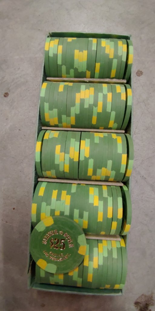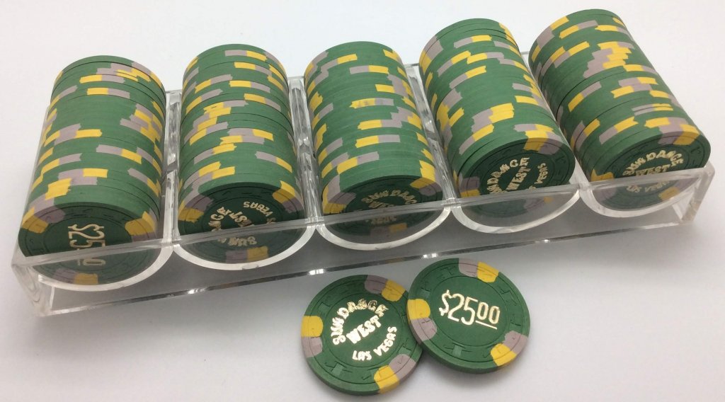 Because I constantly get asked about affordable $25 hot stamped Paulson chips that are in excellent condition and affordable, I am sharing these with all you. These $25 Sundance West Las Vegas casino chips are $300 per rack. You would qualify for free shipping. I have a few racks of these. If interested in getting the 75 percent off discount on these, send me a private message and I'll be glad to place an order.