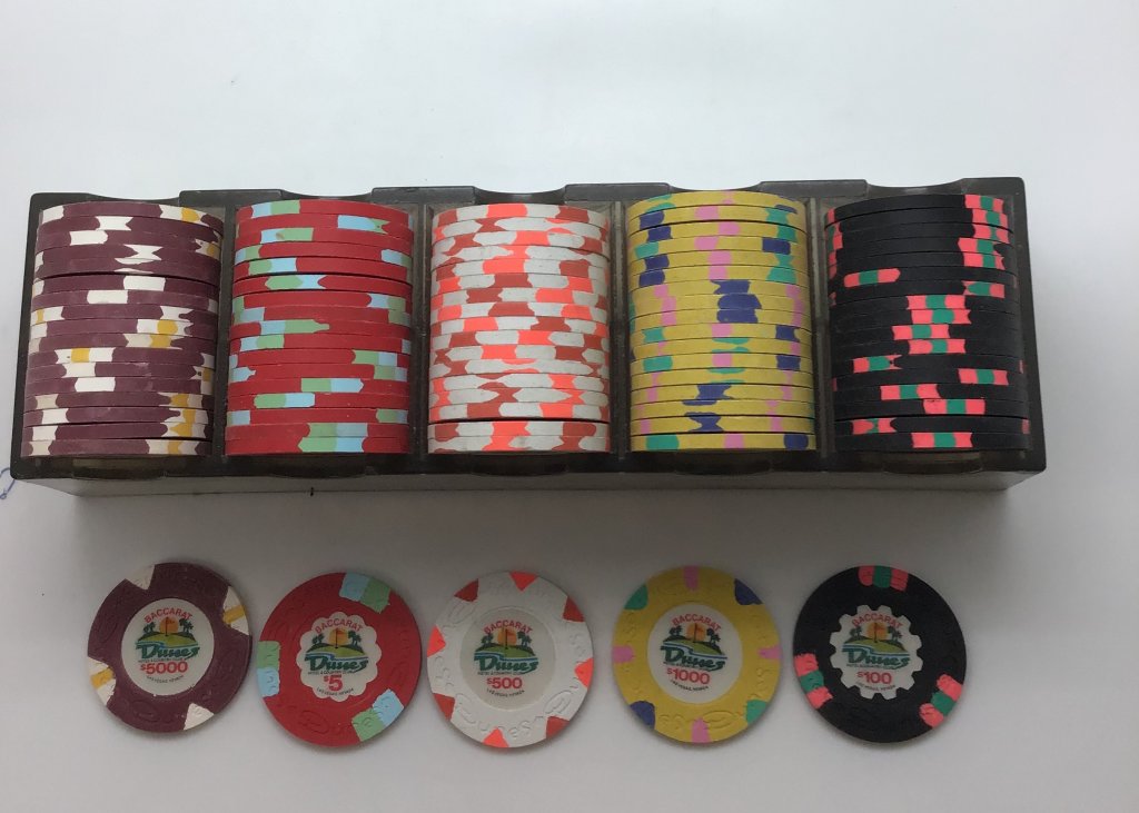 We were able to put together one more rack of the Boomtown 5 chips without the black marks. A few will need to be cleaned, but they are great chips. The price is $250 for the rack. First one that messages me gets it. You will get free shipping.