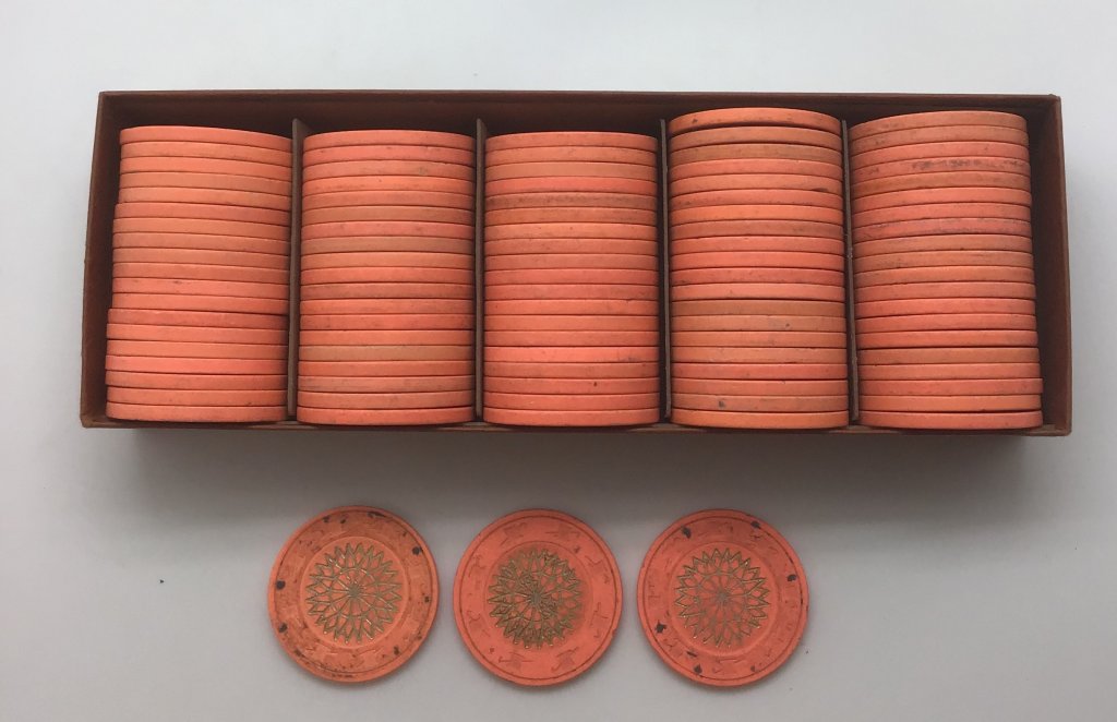 @arch3rThis peach colored rack of Starburst chips will require a bunch of cleaning, but all the chips will stand on their edge and this would be great for a relabeling job.