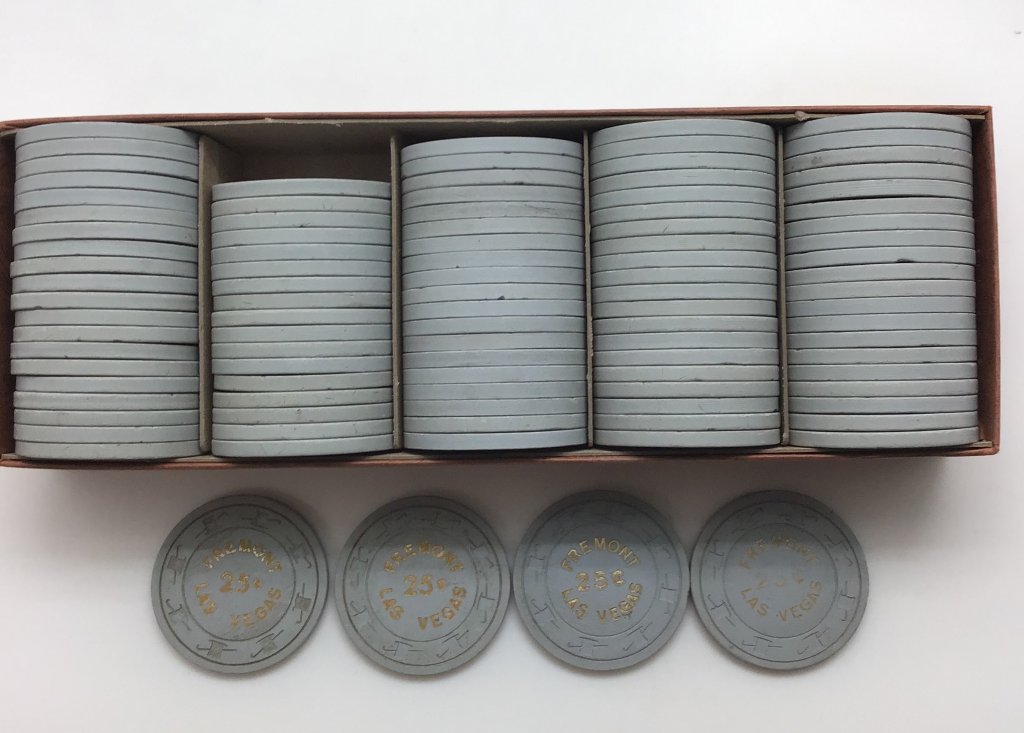 This rack of Fremont 25 cent chips is mixed condition. Please be advised before purchasing. Some have all their foil and some are missing foil. Price is $250 with free shipping. The first one to send me a private message will get them.