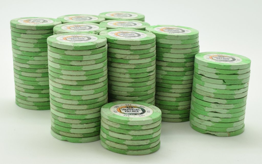 Some more Imperial Palace Biloxi chips! This time $5s, $25s and some $100s! This is all that we have plus maybe a single or two that are listed on the website which you can find here: https://spinettisgaming.com/search?type=product&options[prefix]=last&q=imperial+palace+biloxi