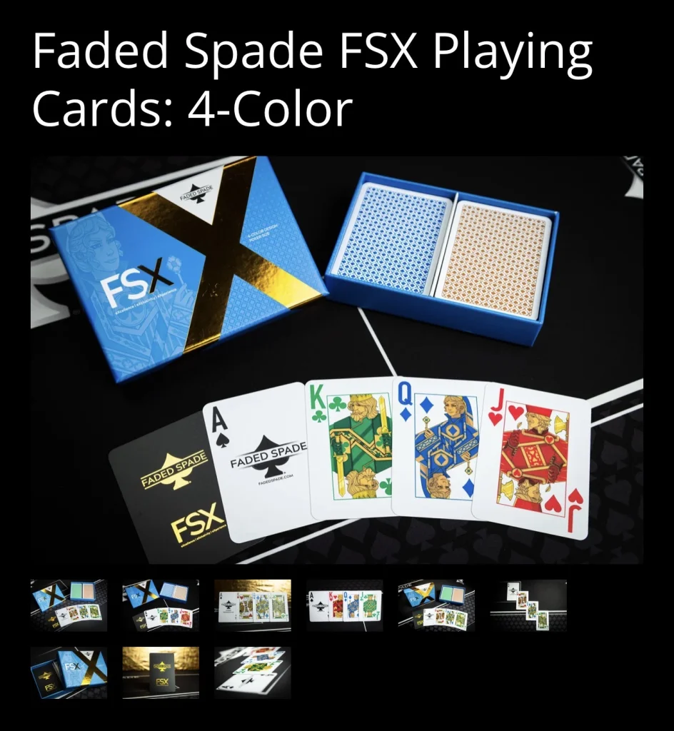 Been using regular playing cards for a while and they’re starting to get to that point again where I’m looking to get another new set. Anybody use these faded spade cards? I’m liking the 4 colour set and am wanting to place an order.