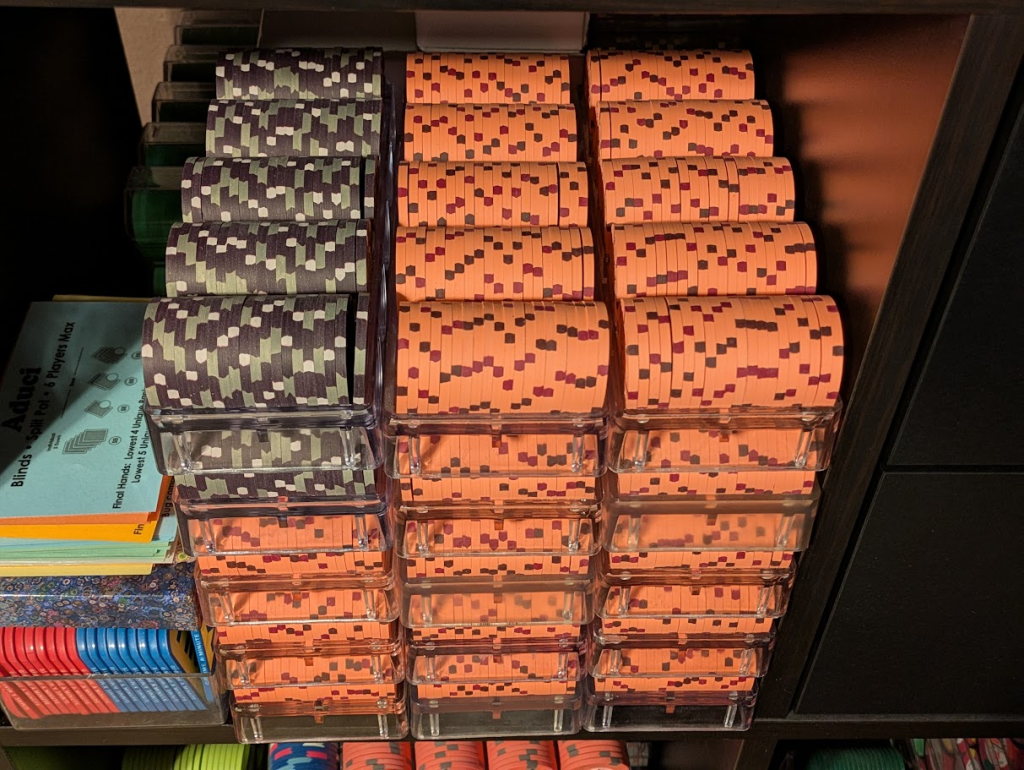Also, I have 4 Sample Sets of the Tournament Chip Sets (6 chips - T25, T100, T500, T1000, T5000, Bounty plus the 48mm Paulson Dealer Button) for purchase ($89 including shipping). Available for purchase on thechipvault.com