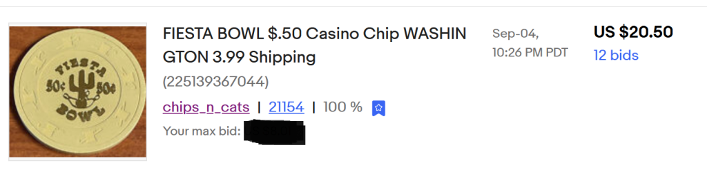 After it went past my max bid, I ignored it. It's a great chip, one of the best hot stamps ever. Glad I have one. And for much less than $20.50 + tax + shipping.