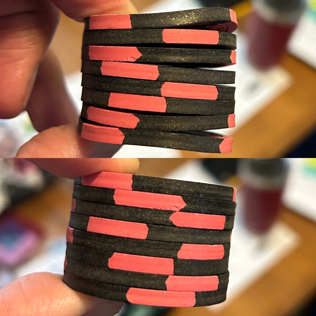 View attachment 604375Remove the chips and then using ceramic blanks, carefully align them and clamp in a hand clamp (very snugly but not SUPER tight). I used colored DDLM ceramics with no color transfer on either the ceramic or the HSI chips. Blank ceramics would be preferable if available to remove all possibility.