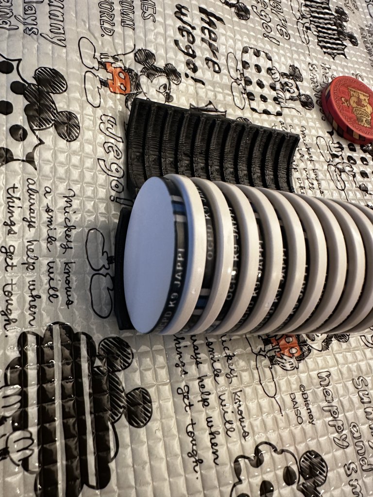 4. Place the 22, 43 mm ceramic blanks on top of the heat pack to warm (I don't think the ceramics are that important to get to the same temperature as the chips you are trying to flatten - but I think that the cooler they are, the more heat they will suck out of the chips you are trying to flatten leaving you with a shortened window to flatten the chips overall).