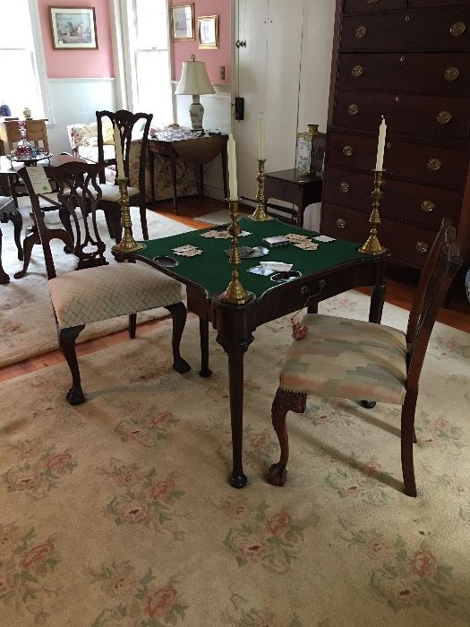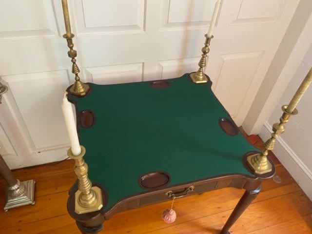That totally makes sense! I think my mother has a bridge table actually. I had never seen one with felt and little trays, learned something today!As Zombie said, certainly not great for poker, unless you never play more than 4 handed. But also definitely not fugly. This is a very cool, and likely antique table. The recessed trays would work well for chess, checkers, or any game where pieces are removed from the board, as well as any traditional 4 handed card games such as bridge. I'd buy it in a heartbeat if it were close and the price was right.