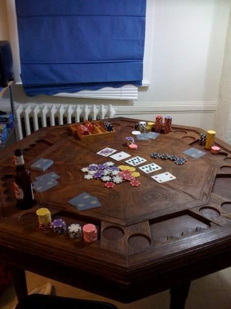 I know Ive posted this in this thread before, but it always makes me chuckle when I see it pop up in my FB memories. Bought this table 12 years ago, sold it about 5 years ago. Since then I've built three proper poker tables, and bought over 15,000 chips.