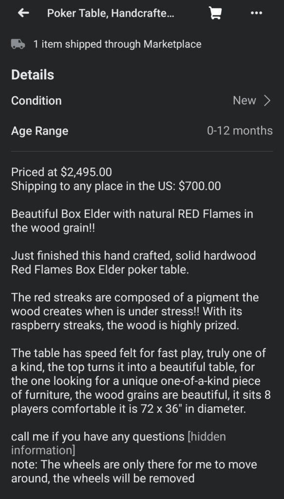 I agree. This is gorgeous woodwork. If you had a log cabin someplace this would make a fine addition. I imagine this would be a difficult sell, but if the woodworker could be commissioned for a custom table he would have better luck.