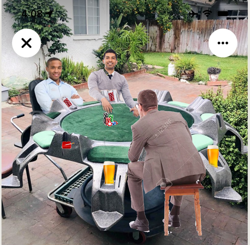 I need someone to photoshop in some pics of a chair, poker chips, a beer, pack of lung darts and an ashtray.
