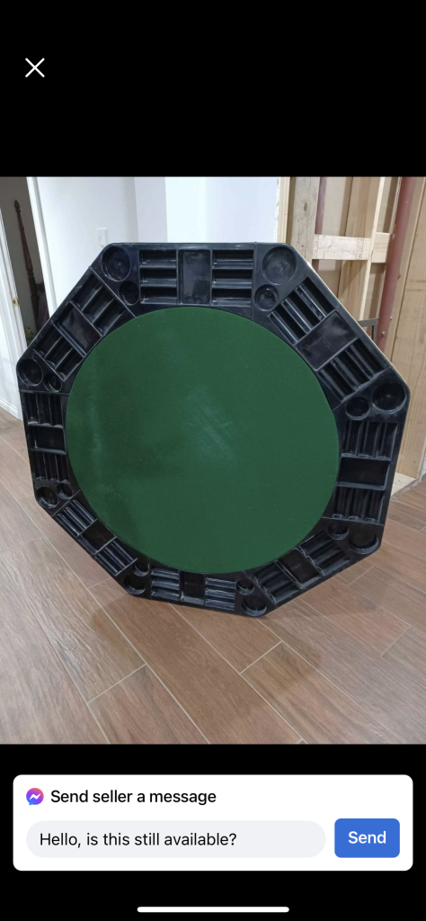 Heavy duty professional poker table with beer holders chip holders and if you smoke cigarette holders bought it for $1500 will sell for $350 or best offer!!!It’s heavy duty and very heavy is over 200 pounds.