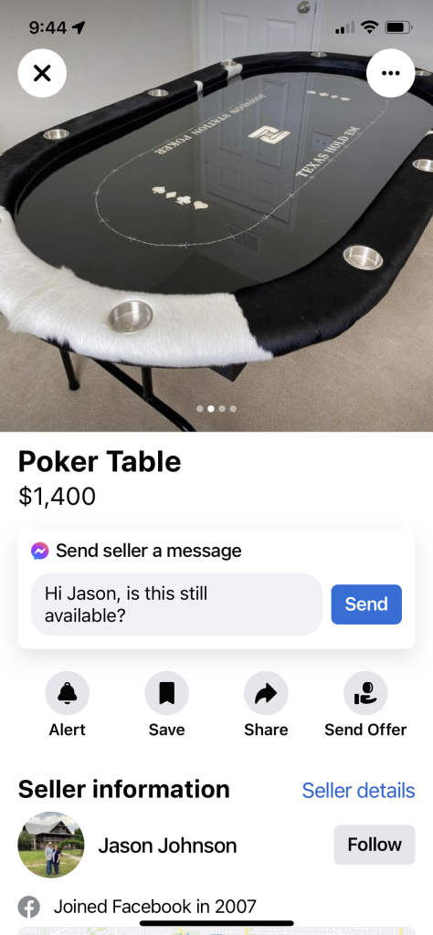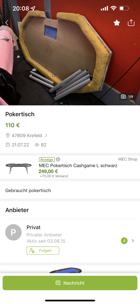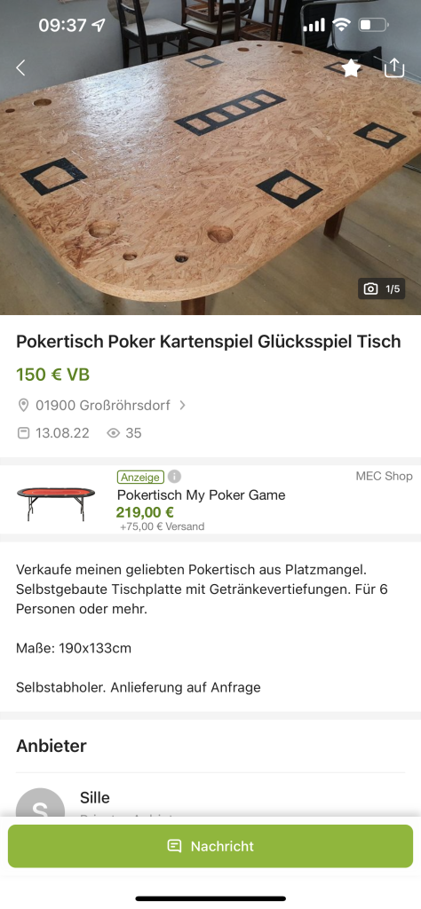 Sell my beloved poker table due to lack of space.