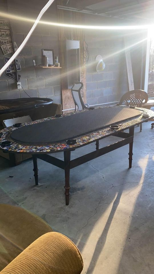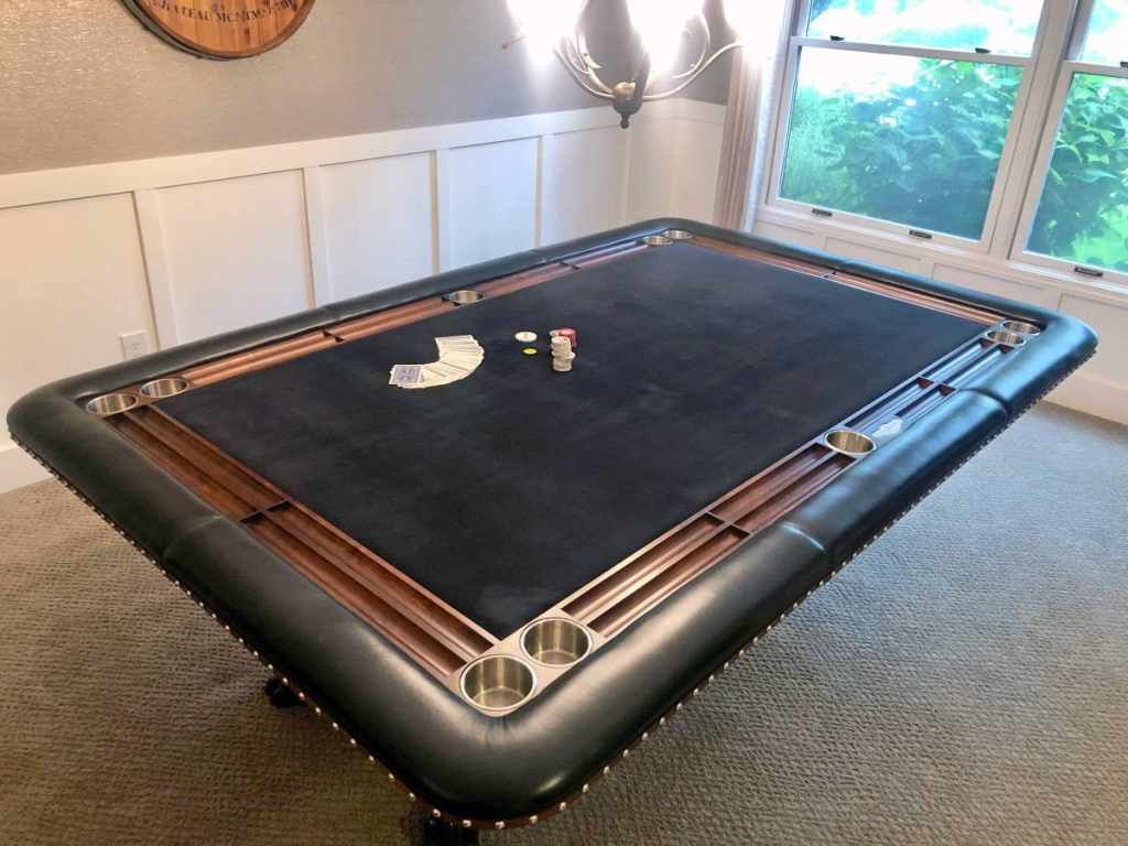 Folks who want their poker table and pool table to match, but don't understand it's a bad idea.....Nice craftsmanship... but for $5500 it better come with a solid gold rake and sexy attendant to retrieve cards and chips from the middle. Seriously though who spends $10k having someone build something like this? View attachment 1286806