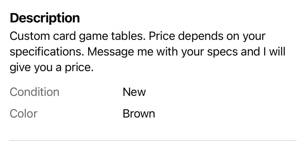 He's not selling that table, he's selling custom tables. The $1 price is just to garner attention - clickbait, if you will.Wow lol I read it quick after a few beers and thought it was just the one for sale. the price based on your specs part made zero sense to me...well don't I feel dumb...