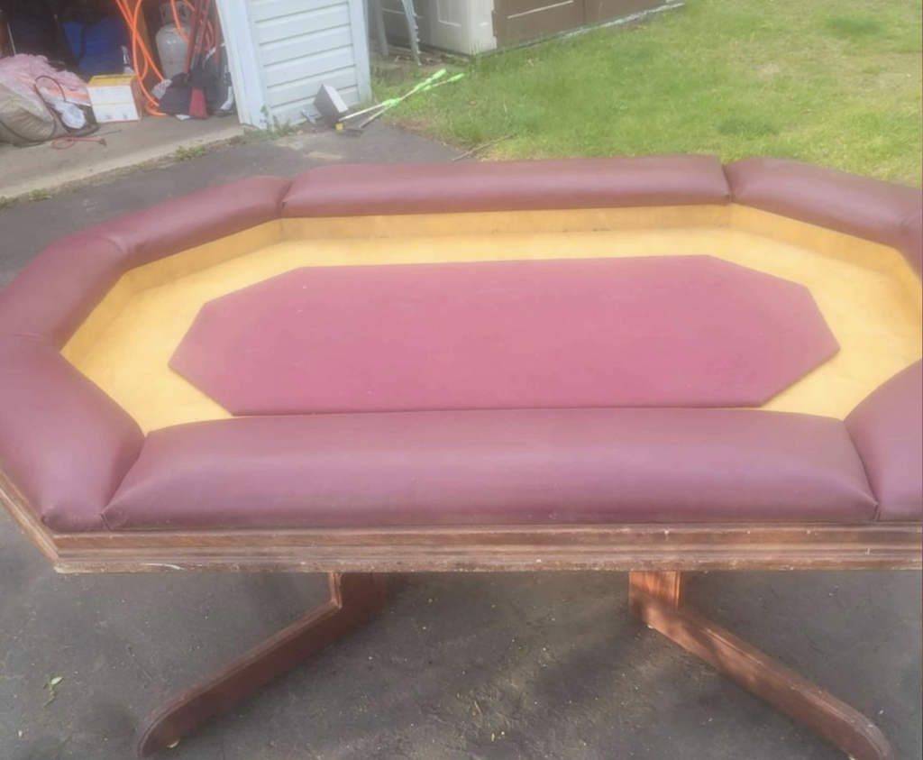 I agree! That is why I couldn't caption the photos. If this didn't have the wood race track and an upgraded felt it would be an alright table. I wonder if a flip up rail could be done on a oval style table.I’m just sayin…
