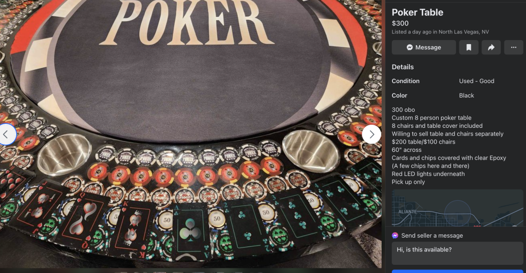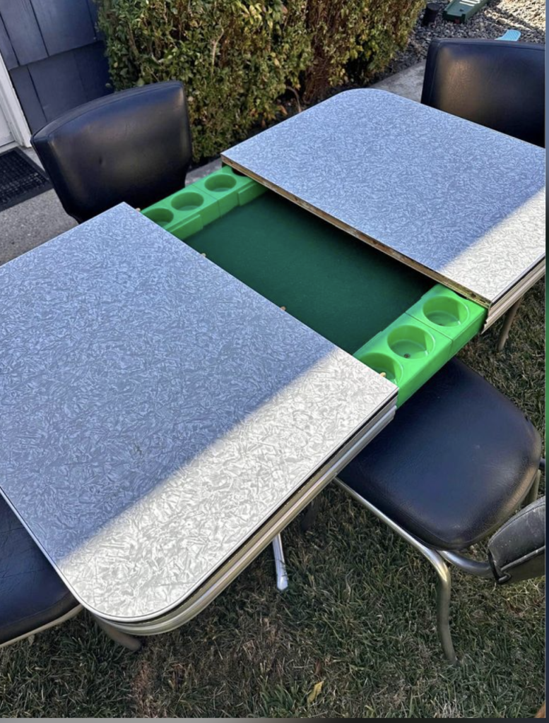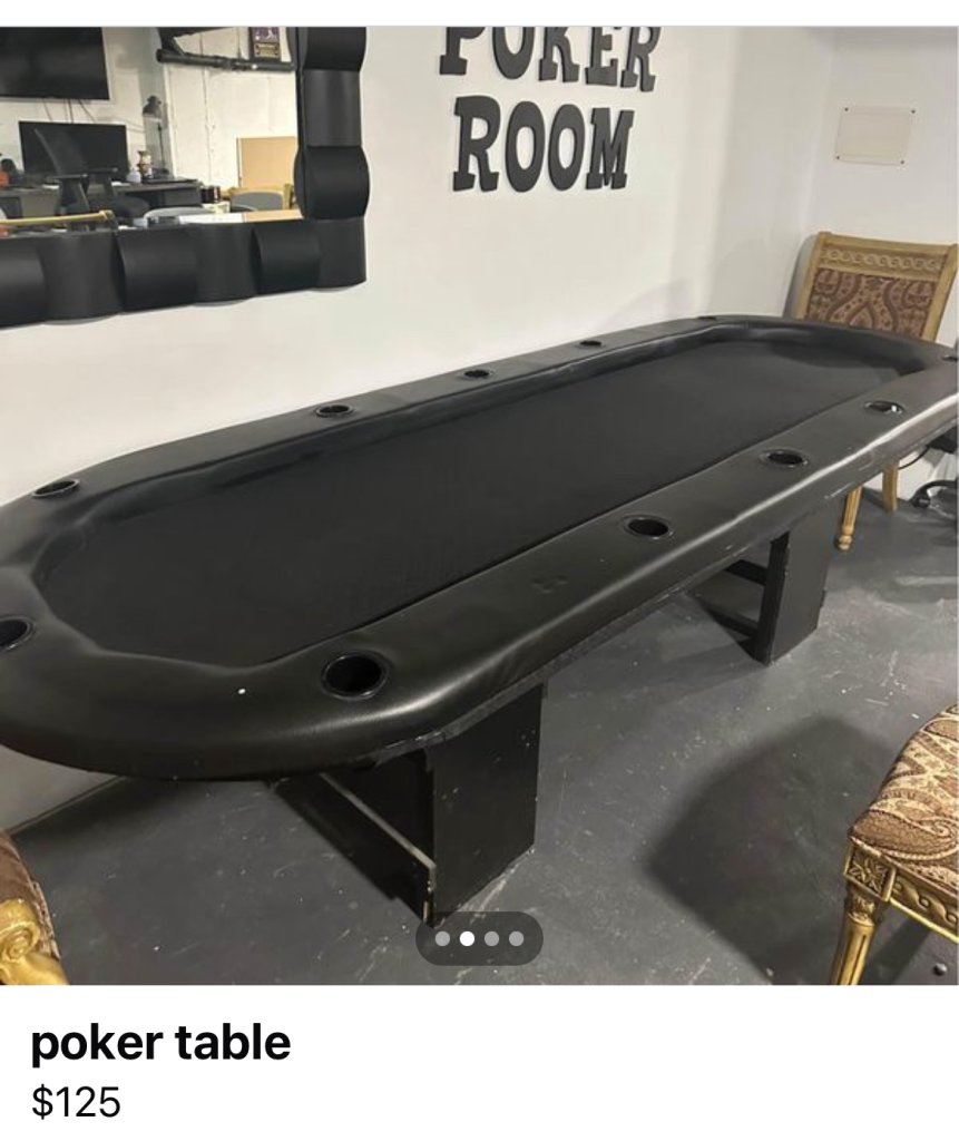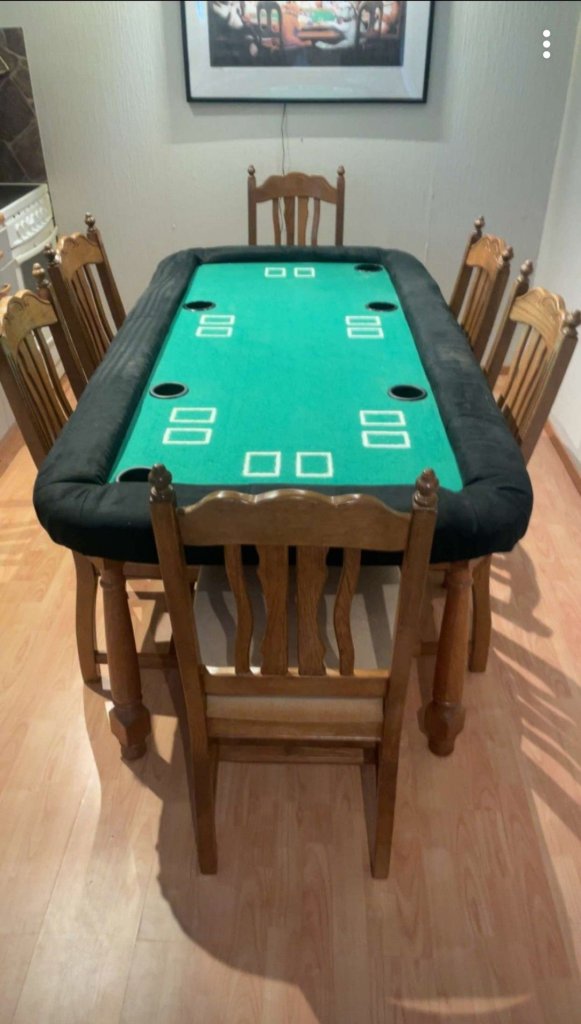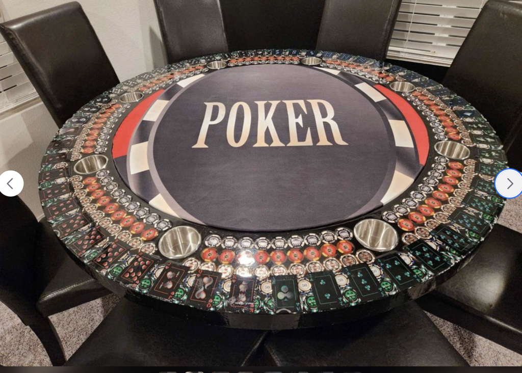This is obviously a dude who dates women that like poker. He thought he was doing something nice by making them a table. Every woman he dated and made a table for saw this monstrosity and dumped him on the spot. Now he is swearing off women not realizing that it's actually those tables that got him dumped.Somebody made 6 of these things! SIX!