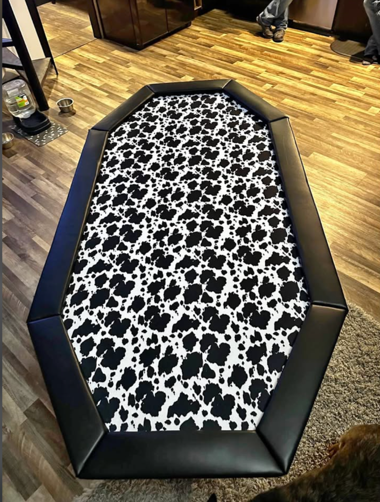 I made an octagonal table for a friend a few years ago (of course not as beautiful). Unfortunately, I don't have any pictures on hand and he now lives 400 km away from me. We used a roulette rake to push the chips. Is that the case for you too?
