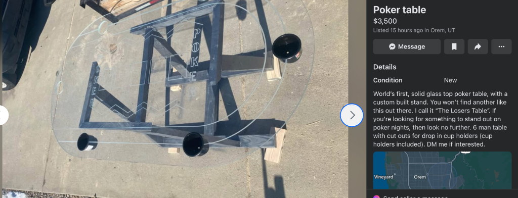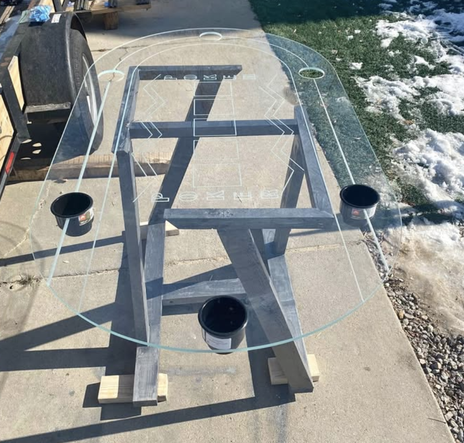 Wow! As beautiful as it is impressive! I just love everything about it! The shape, the style, the theme of the felt (The 2 lines ending the betting line and refer to the glass) and the finishing touches which are undoubtedly exceptional! By the way, the bunch of grapes is really a great idea!