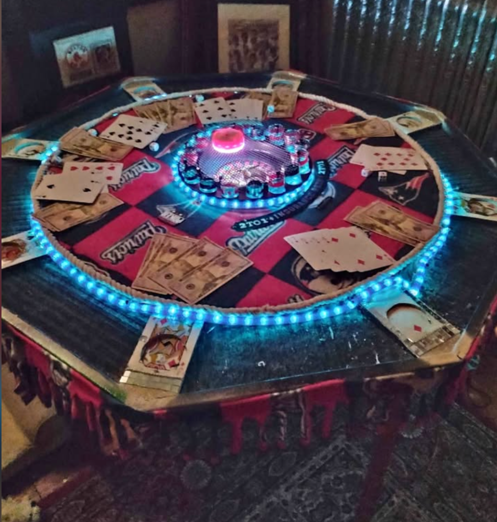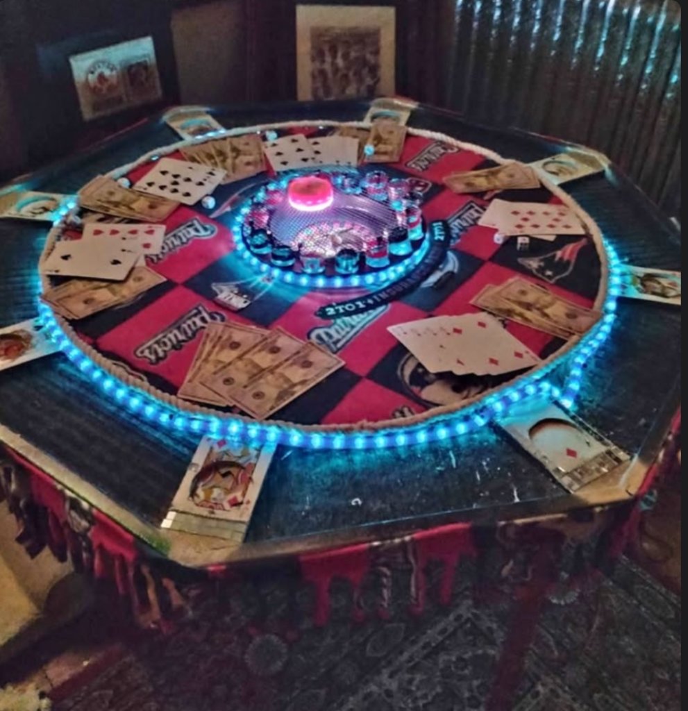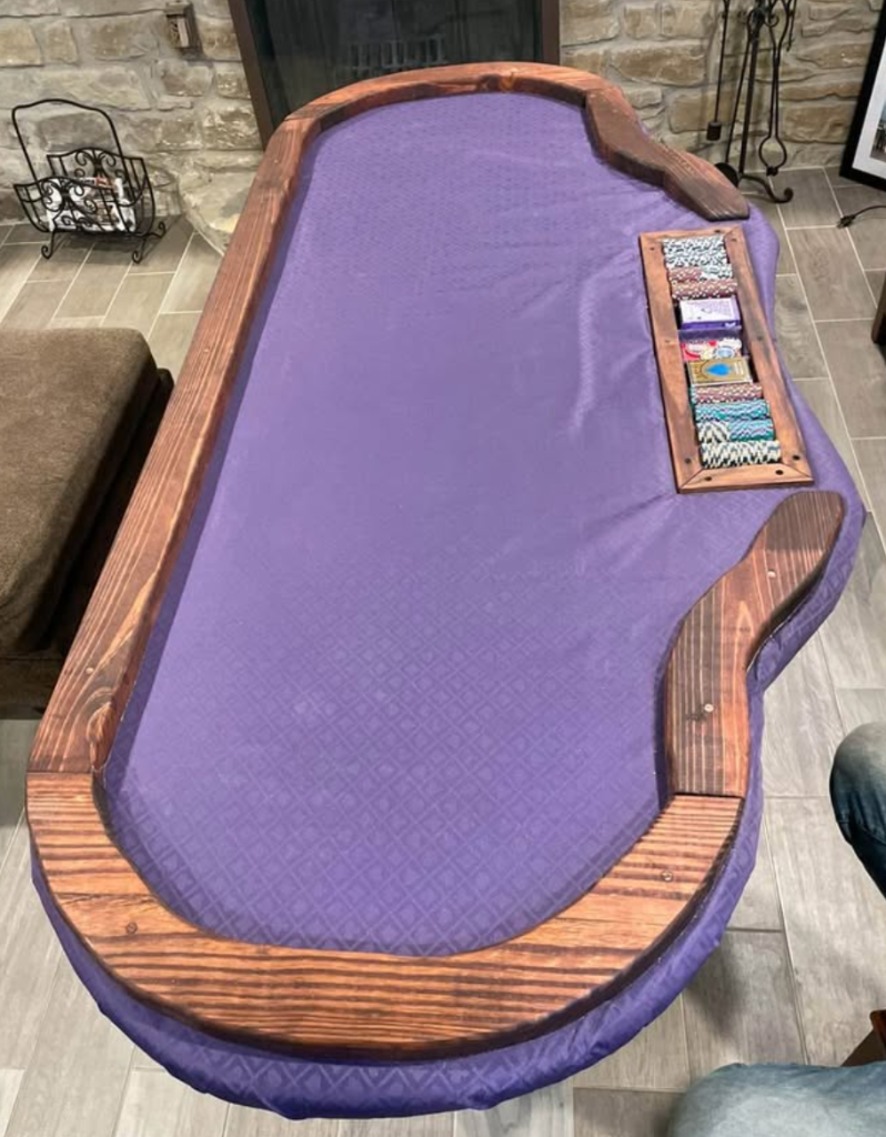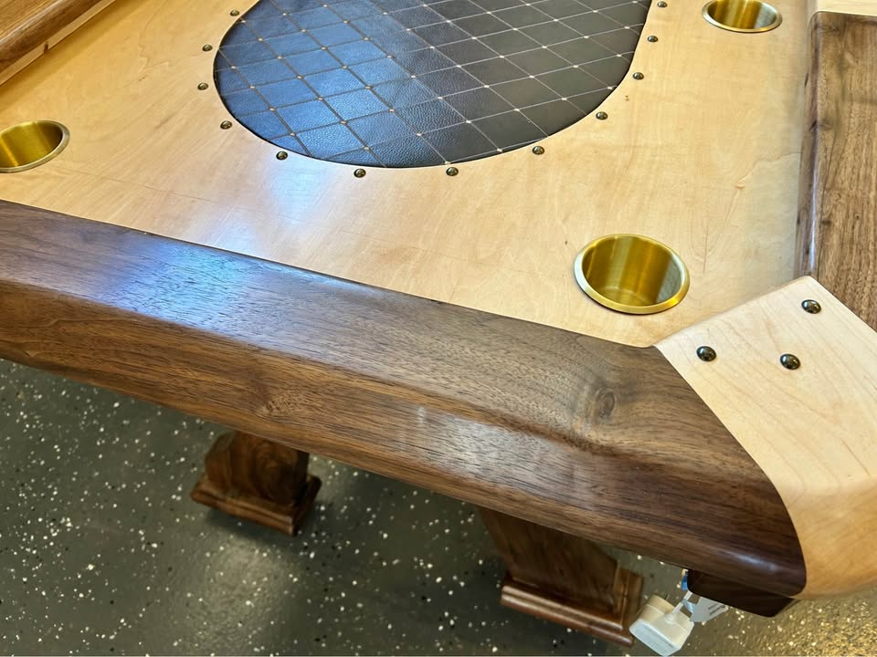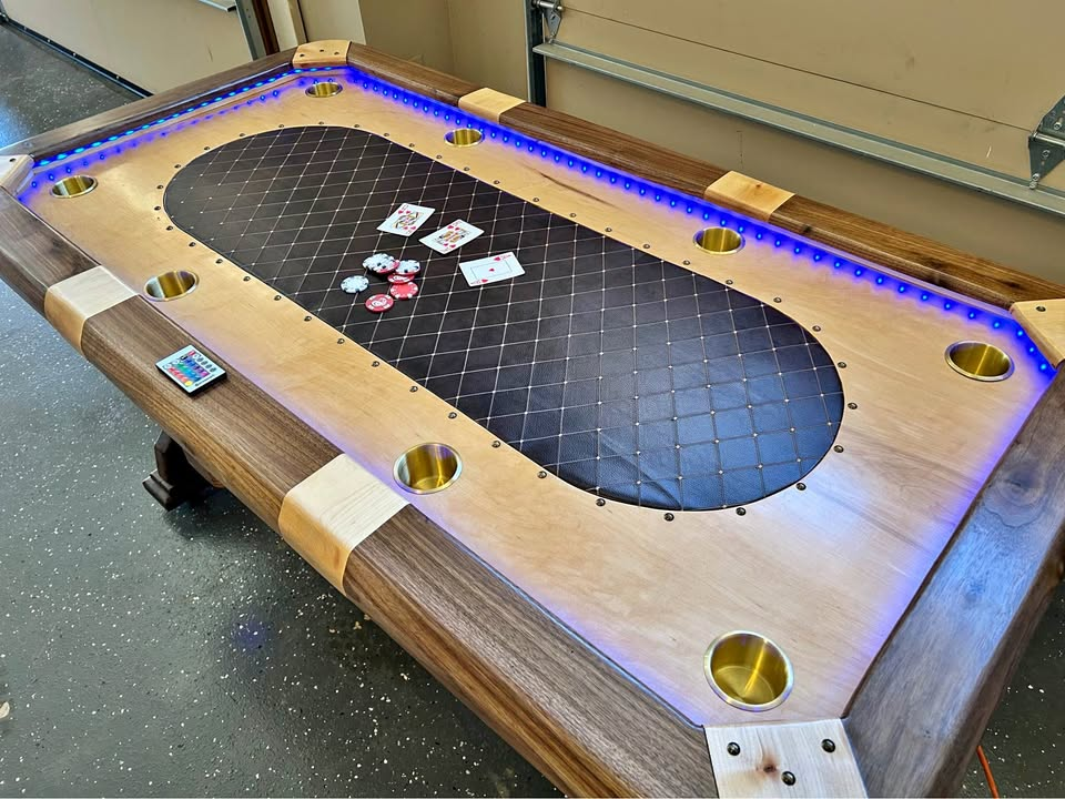 Just finished this brand new hand crafted this Black Walnut with Maple inlay live edge gamming table, truly one of a kind, if you are looking for a unique one of a kind piece of furniture this is it, the wood grains are beautiful, it can sit 8 comfortable It measures 70” x 36” the prefect mancave gaming table.