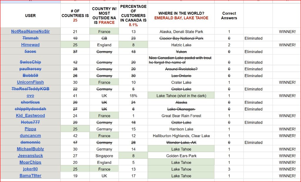 Below is all the compiled information and the list of winners who had at least one question answered correctly.