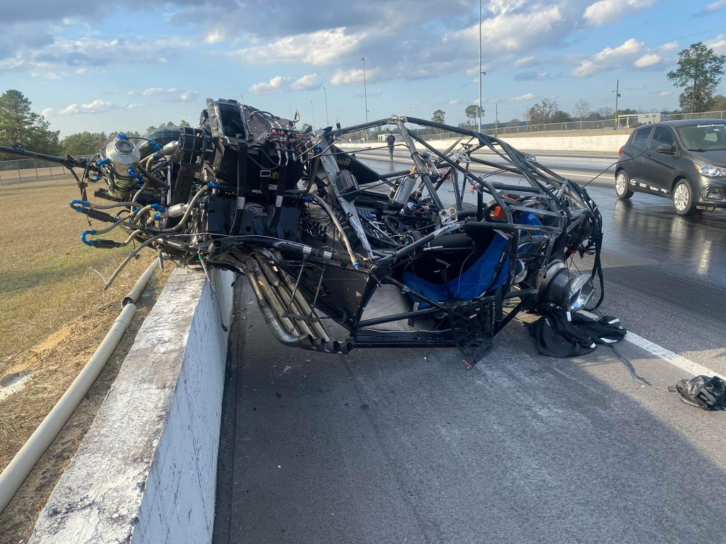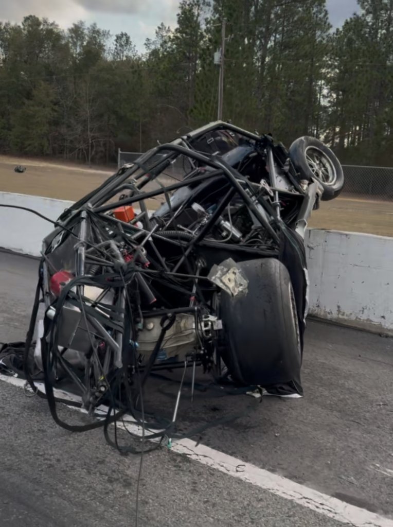 And just for kicks and giggles like we didn’t have enough on our plate already Sunday, February 9. My husband wrecked his race car while we were testing in Augusta, Georgia and completely destroyed it, but he was able to walk away with just a concussion and banged up no broken bones. He wrecked his car at the 330 mark and rolled it 330 more Feet. God saved him, and I am forever grateful. The car he was in had all the safety features that needed and the seat he was in was made just for him, a full containment seat, five point harness, a Hans device and all his safety gear was in use and it saved his life the picture below show up before and after what are about three seconds apart from each other.. The last picture shows the area he was sitting. His helmet was cracked…. The bar inside where his helmet hit was bent. The car rested on the wall like you see.